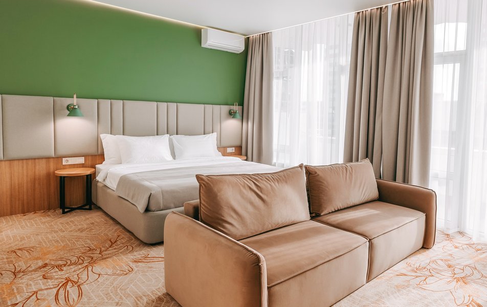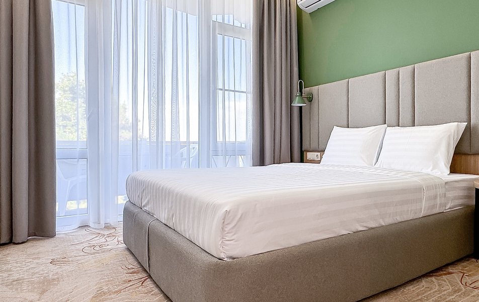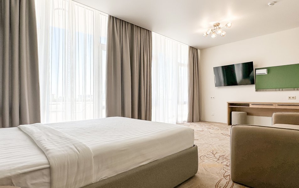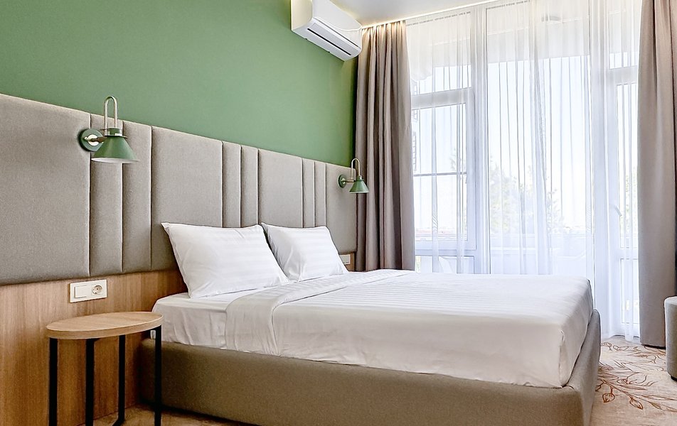 Отель занимает закрытую охраняемую территорию площадью 2 гектара, расположенную в благоустроенной парковой зоне с элементами современного ландшафтного дизайна. На территории возвышается отреставрированный 8-ми этажный жилой корпус, оснащенный двумя лифтами. В отеле прошла полная реконструкция номерного фонда и инфраструктуры в 2024 году, появились номера повышенной комфортности с дизайнерскими интерьерами. Современные номера оснащены всем необходимым для комфортного проживания: везде установлена сплит-система, есть плазменный телевизор, мини-холодильник, чайная станция, доступен беспроводной интернет, а в ванной комнате для гостей подготовлены наборы туалетных принадлежностей.