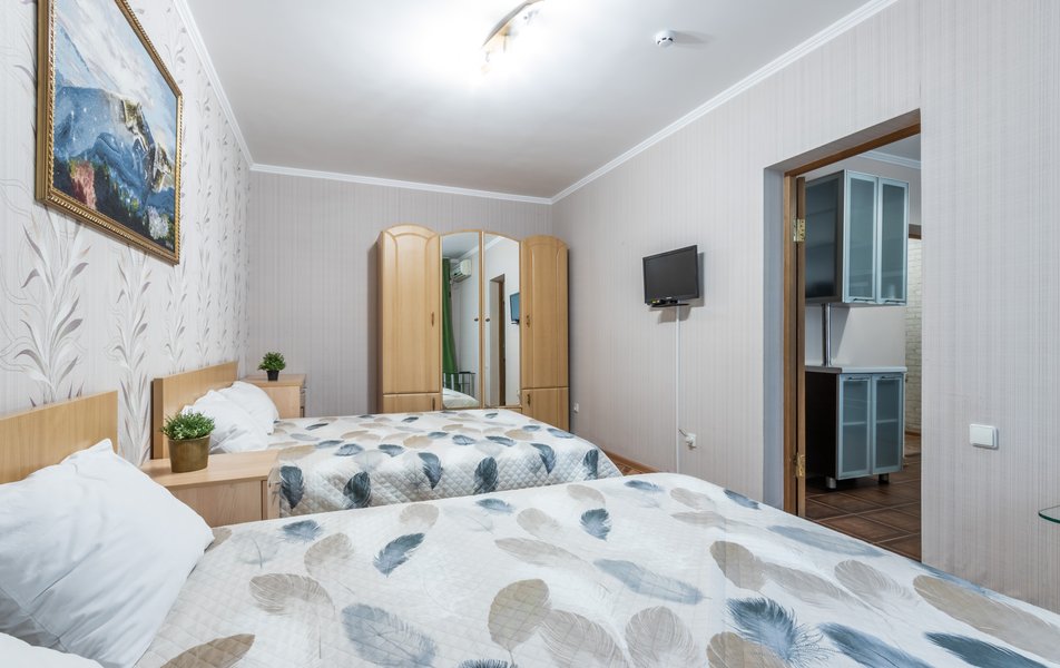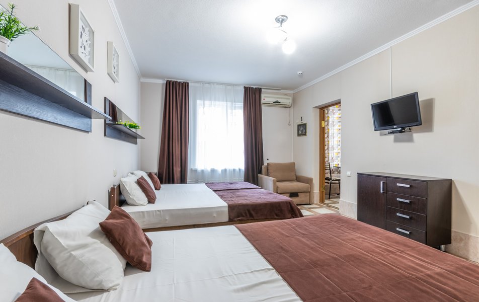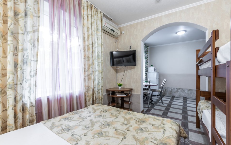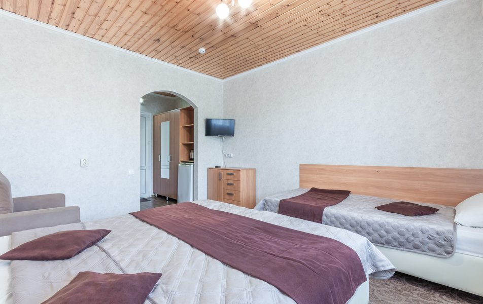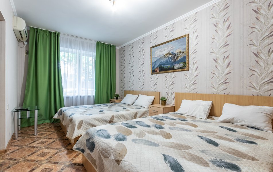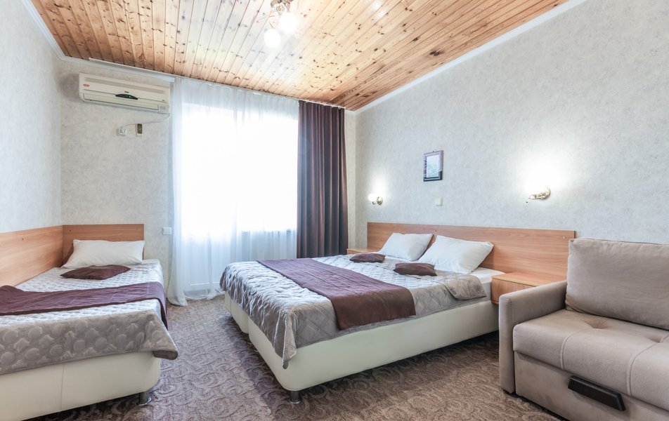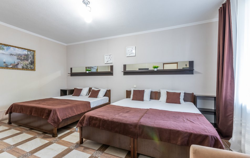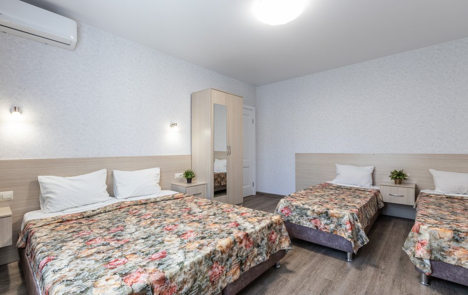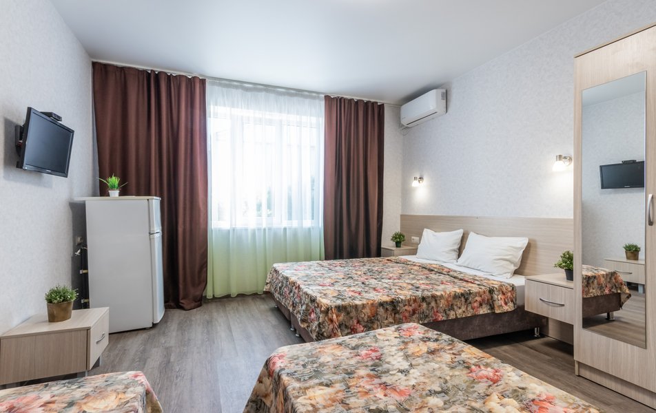 Для размещения гостей предусмотрены уютные номера с современным интерьером, оформленным в светлых тонах. В каждом номере установлены кровати, шкафы для одежды, телевизоры, кондиционеры, холодильники и отдельные ванные комнаты с душем.