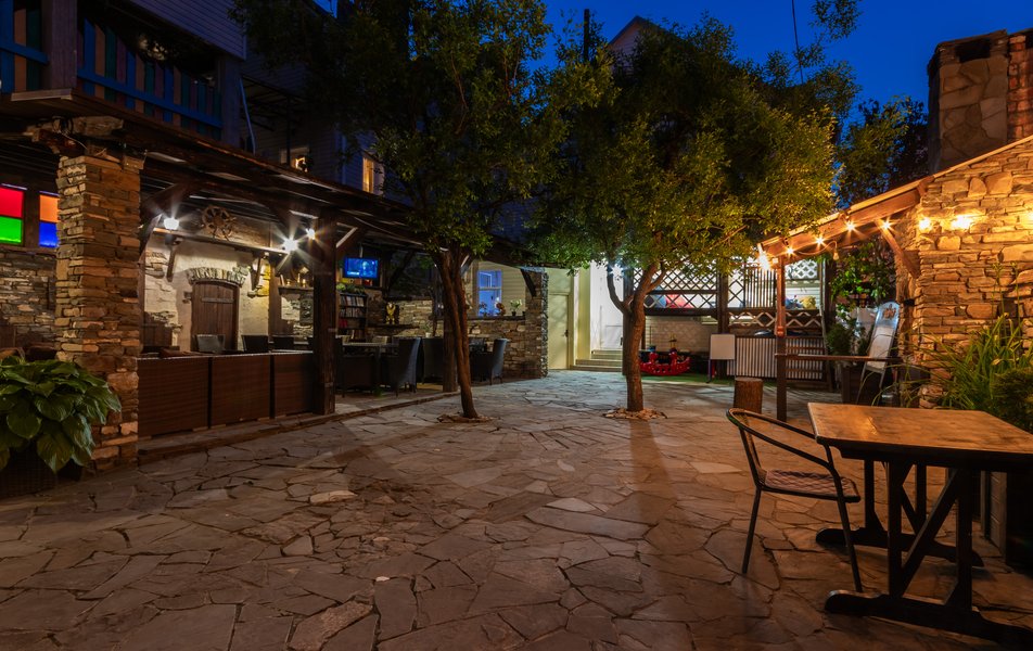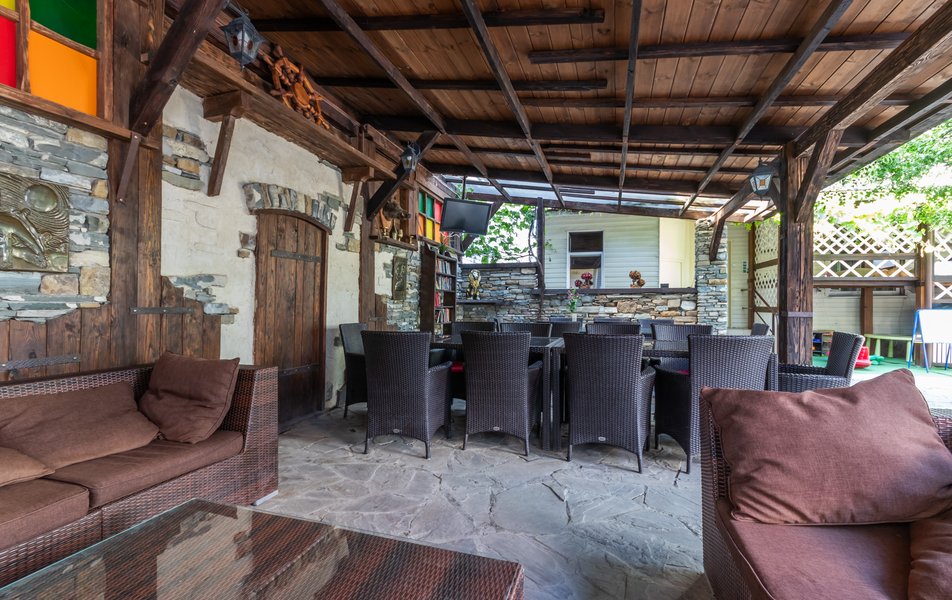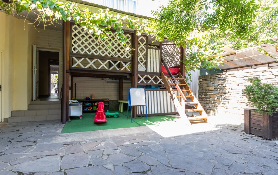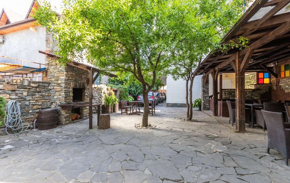 На территории гостевого дома обустроен тенистый двор с зонами отдыха и принадлежностями для барбекю. Для детей предусмотрена игровая площадка.