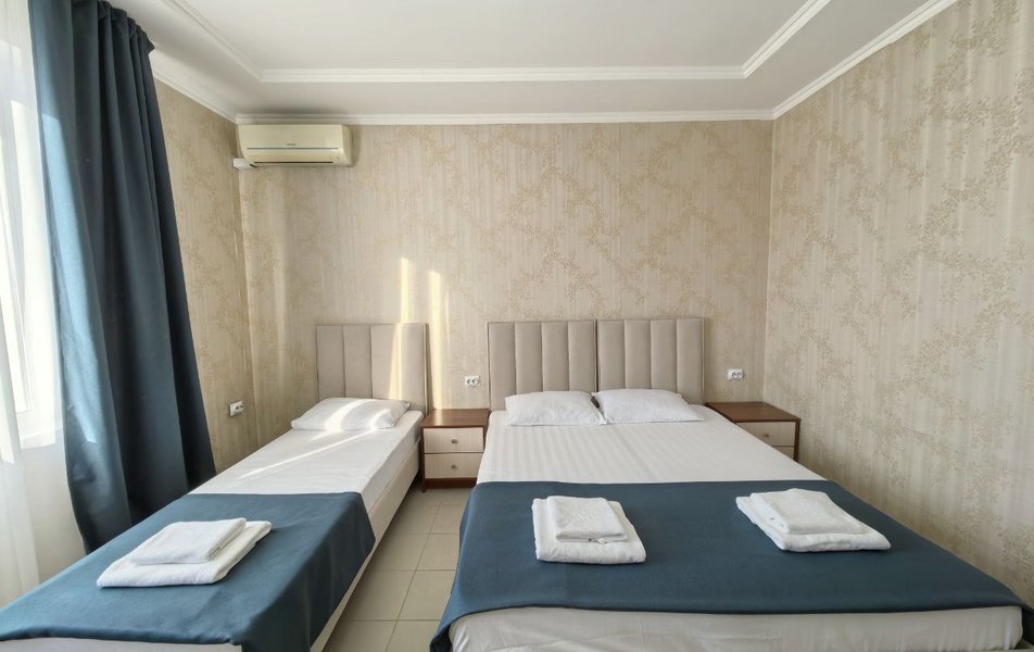 | Условия проживания: | 2-х, 3-х, 4-х местные номера со всеми удобствами. В каждом номере холодильник, телевизор, кондиционер, необходимый набор мебели, душ, туалет, чайник. |