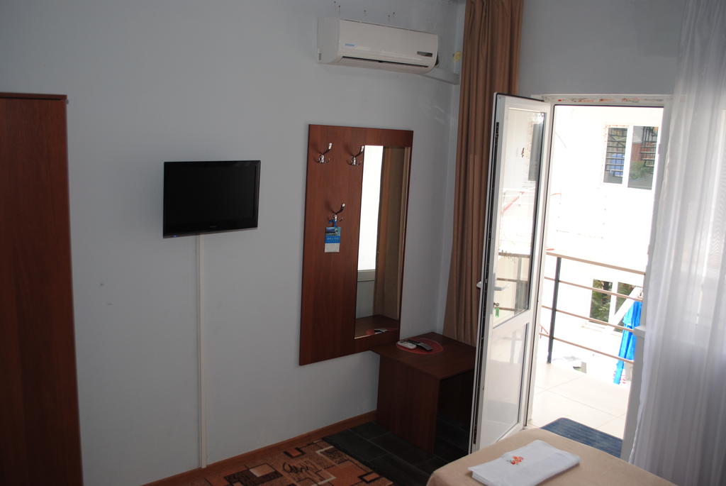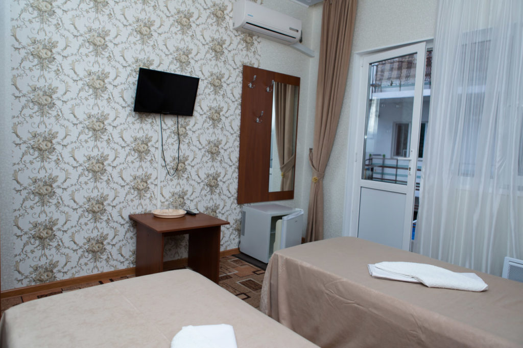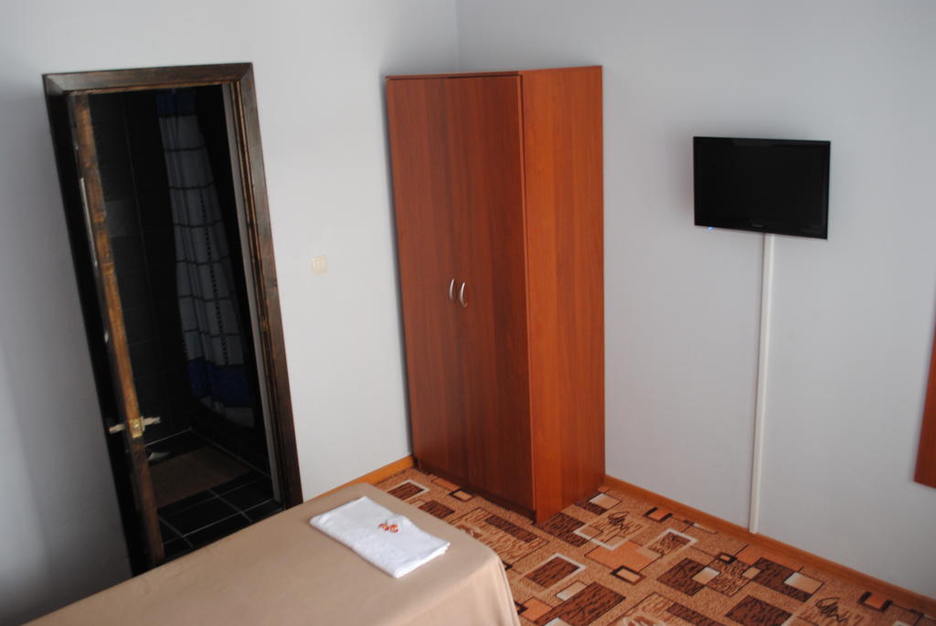 Размещение: К услугам гостей имеются 2 — 4-х мест. номера, Стандарт класса. Все номера с выходом на общий балкон. В номере все удобства — душ, туалет, плазменный телевизор, холодильник, кондиционер, евро-кровати, шкаф, тумбочки, зеркало.