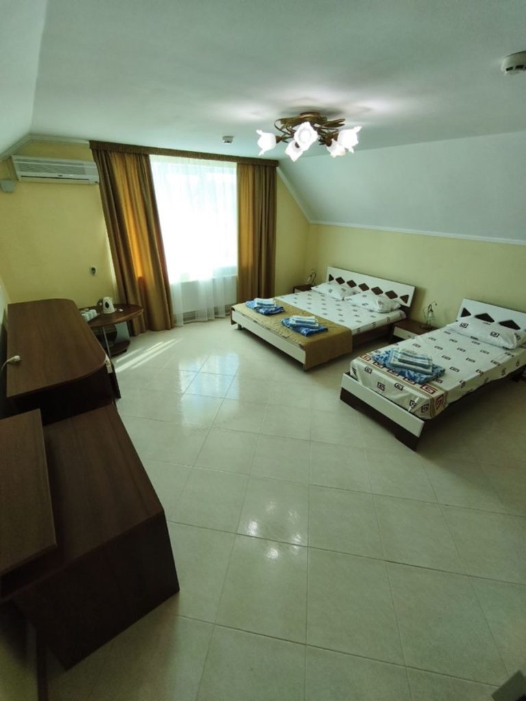 — 3-местные полулюксы —  с удобствами, ТВ, ХОЛ, КОНД. Расположены на 3 этаже в 3-этажных корпусах (№1 и 2). Без балконов.