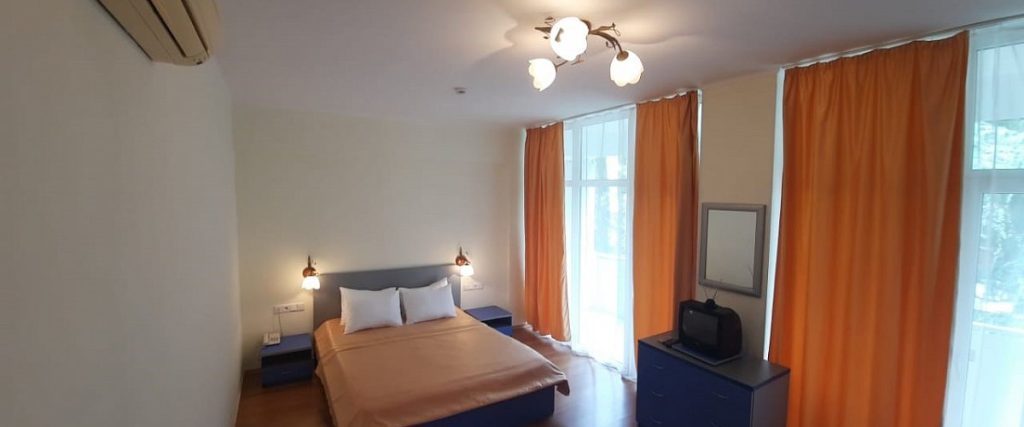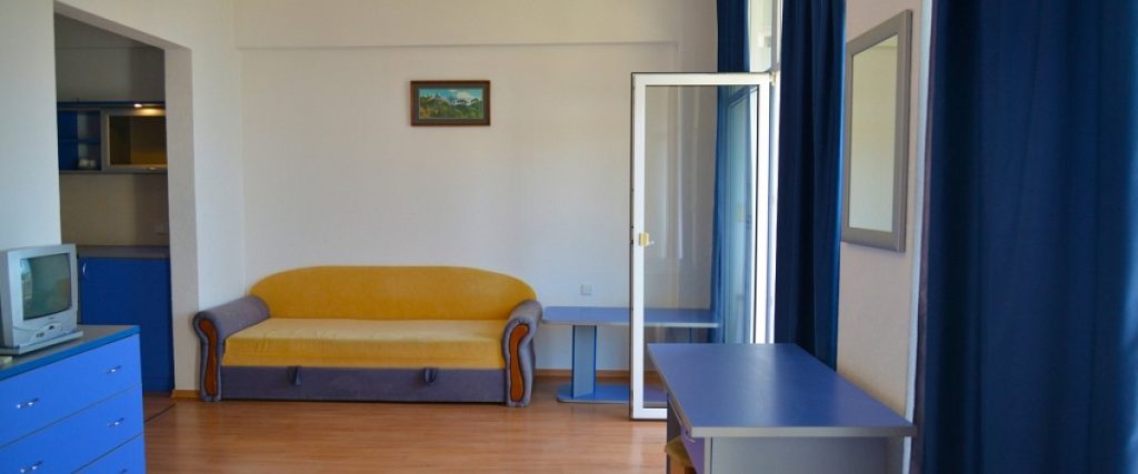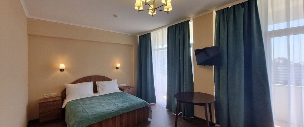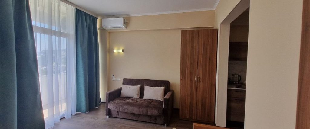 2м стандарт (улучшенный) — Улучшенный номер, включающий в себя большую двуспальную кровать, раскладной диван, шкаф и письменный стол. Помимо всего, номер оборудован кухонным гарнитуром, холодильником, кондиционером и телевизором. Панорамные окна ведут на балкон, с которого открывается завораживающий вид на море и горы.