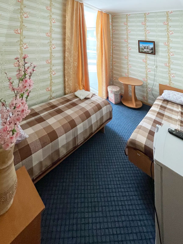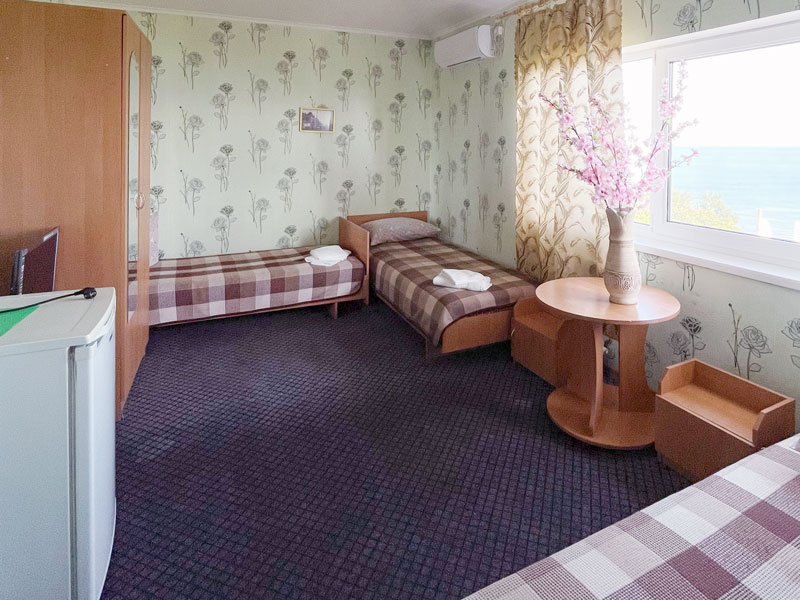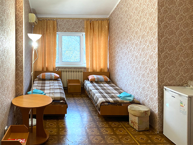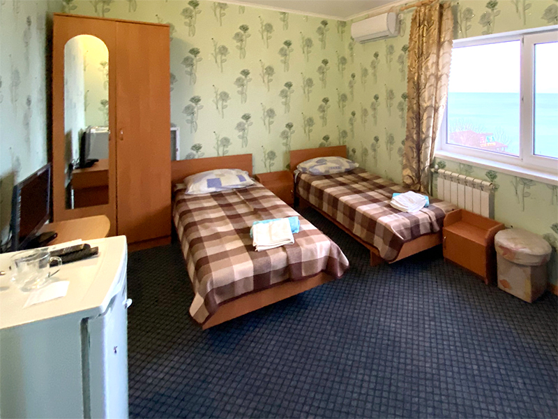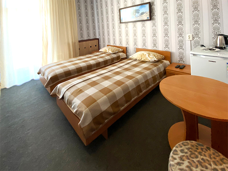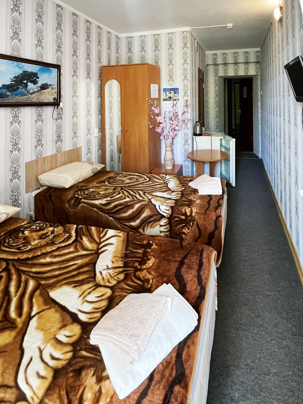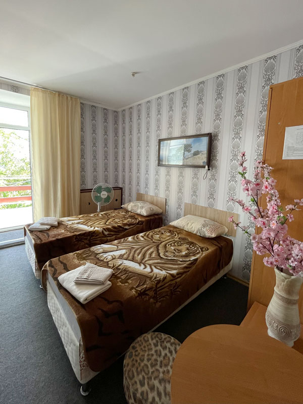 — 2-, 3-местные 1-комнатные номера с удобствами, ТВ, ХОЛ, КОНД. Есть с балконом, есть без балкона. Кровати во всех номерах 1-спальные.