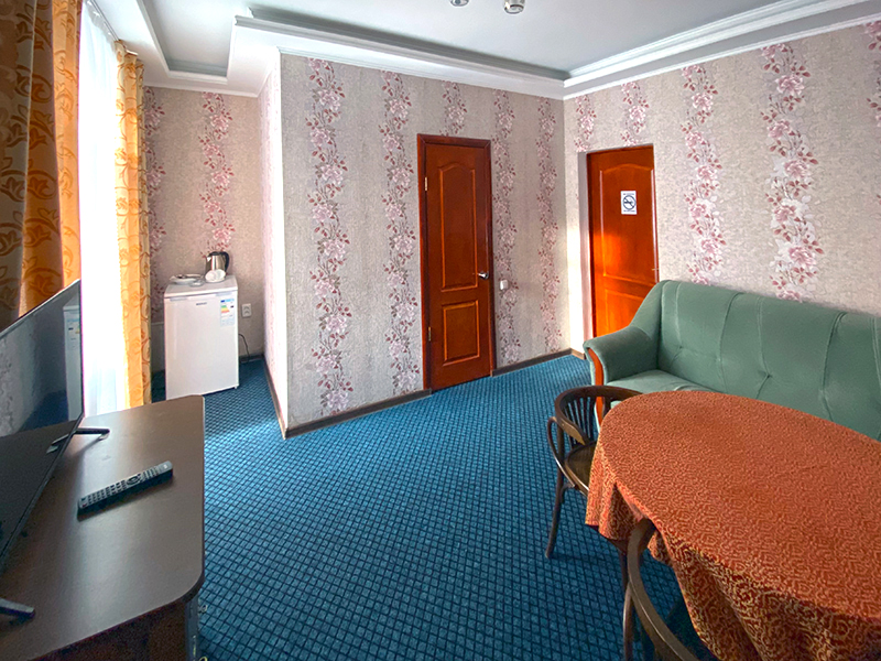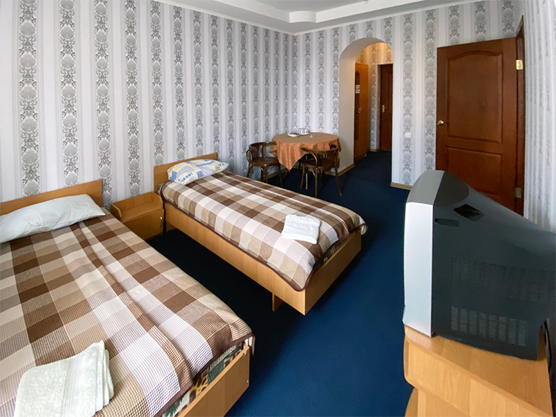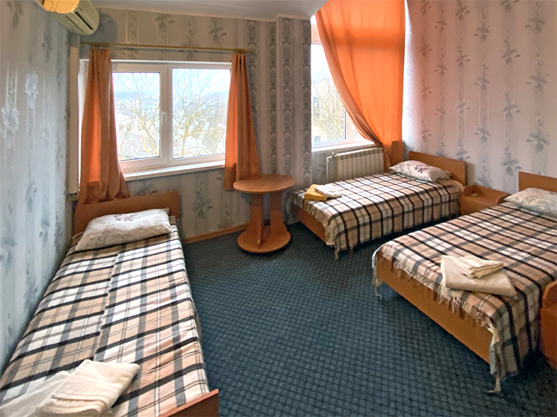 — 3-местные 2-комнатные номера, ТВ, ХОЛ, КОНД. Часть номеров с балконом, часть – без. Кровати – 1-спальные.